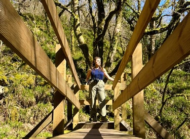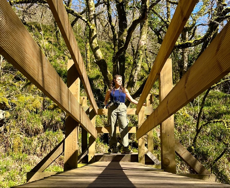 Katie’s artistic journey began close to home, nurtured by the lush natural environments of the South West and driven by her passion for highlighting fragile ecosystems — especially the UK’s rare Atlantic temperate rainforests. These ancient woodlands, cloaked in moss, lichen and liverworts, play a crucial role in biodiversity, carbon storage and wellbeing, yet remain unfamiliar to many. Through vibrant painting, drawing and mixed media, Katie captures both their beauty and ecological fragility.