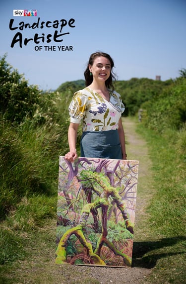 I’ve been proud to collaborate with The Thousand Year Trust (TYT), based at Cabilla Woods on Bodmin Moor, Cornwall. Through my artwork, I aim to raise awareness of the UK’s rare temperate rainforests, spark conversation within my local community, and support wellbeing projects rooted in connecting with and protecting nature. So far, £100 has been raised from profits of artworks created in the forest, helping contribute to rainforest restoration and education. Thanks to TYT, the painting 'Fallen Oak', a tree home to Cabilla Woods, has grown to be a national favorite, as this artwork won my place as a main contestant on Sky Arts' Landscape Artist of the Year 2026.