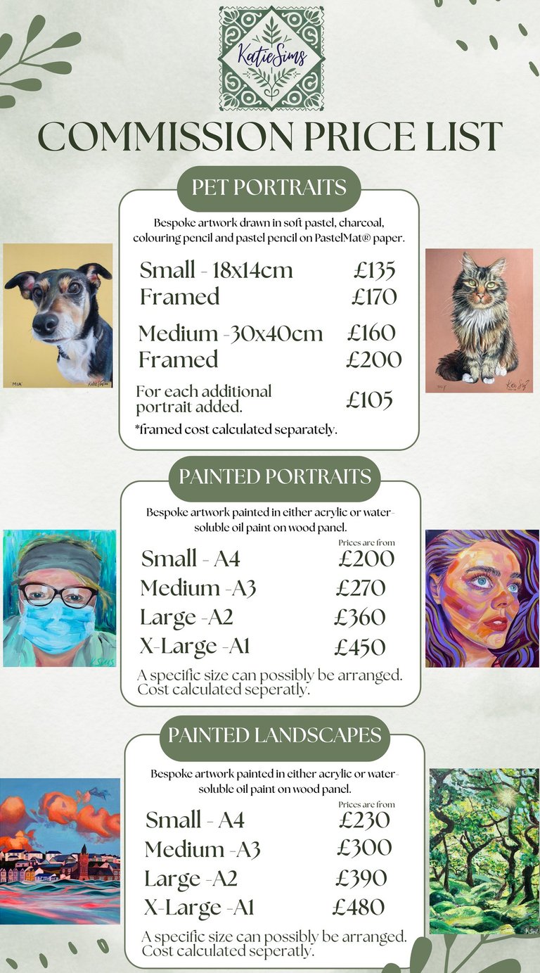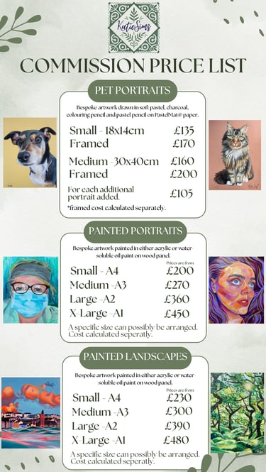 Katie is ready to bring your imaginative visions to life with her bespoke commissions. Specialising in portraits, pet portraits, and landscapes that hold personal significance, she crafts each piece with care and creativity, ensuring it resonates with you on a deeper level. Whether you're looking to commemorate a beloved pet, capture a cherished memory, or simply indulge in a stunning piece of art for yourself.